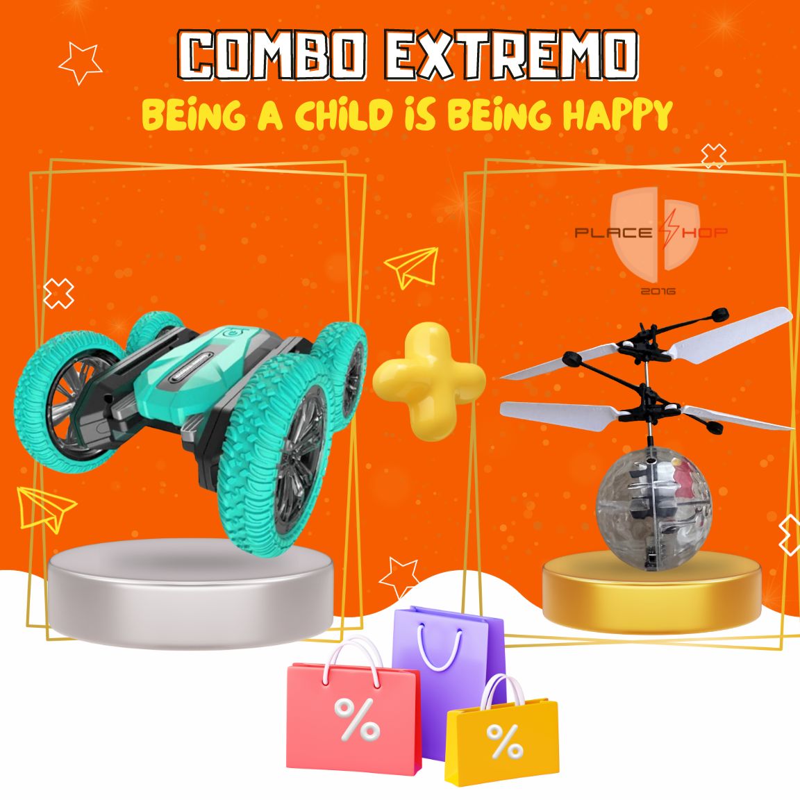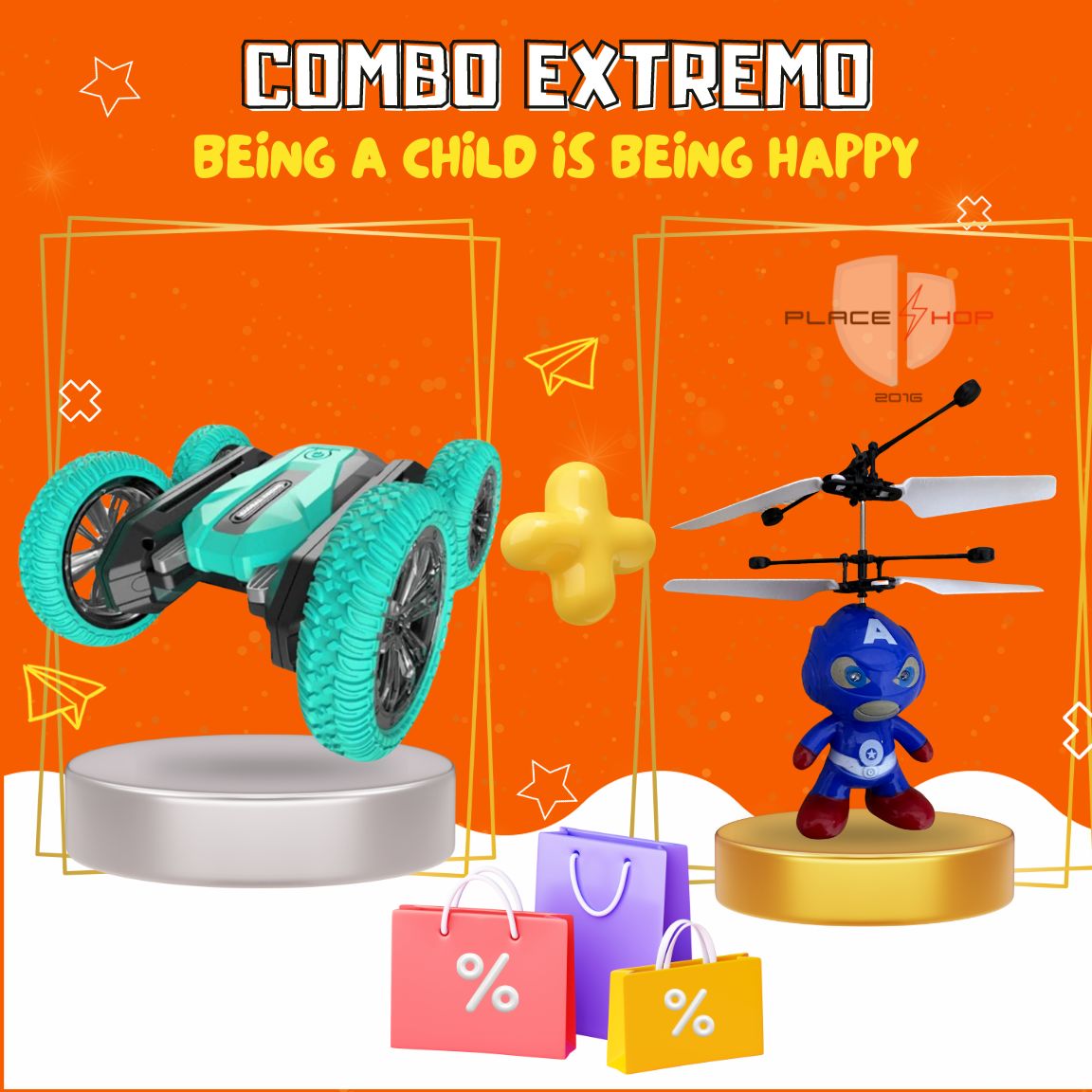 Presentamos nuestro combo extremo, imagina la sensación de controlar un carro acrobático que este bajo tu dirección y luego despegar en un helicóptero que corta el viento, la emoción de tus chiquitines está al alcance de tus manos.